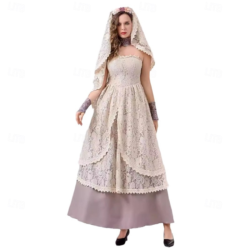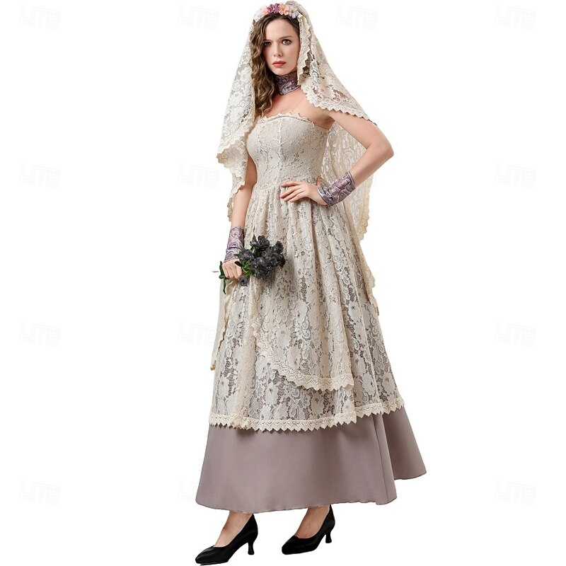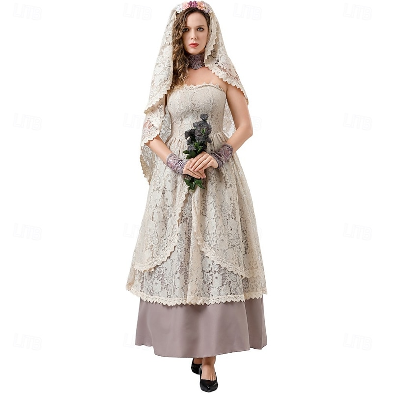 Victorian Medieval Renaissance Prom Dress Bride Outlander Lace Fancy Dress Women's Celtic Fantasy Halloween Carnival Masquerade LARP Ren Faire Festival Adults' Dress 1