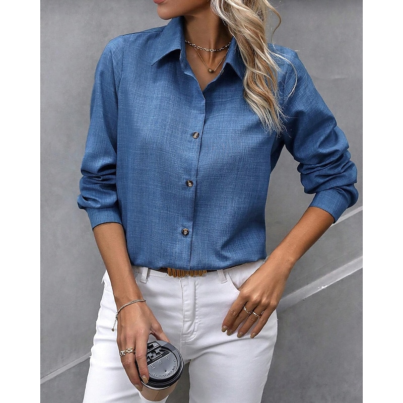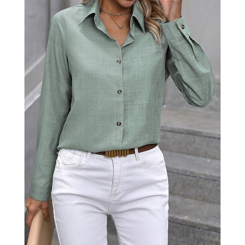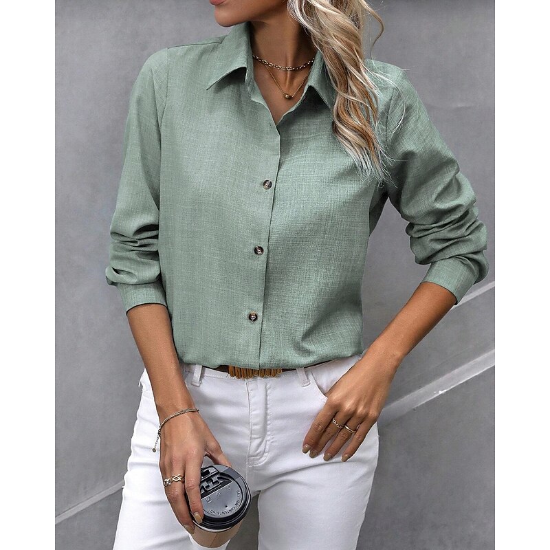 More information about Women's Shirt Stylish Modern Long Sleeve Regular Tops Shirt Collar Work Black Light Green Pink Blue Spring Fall Winter