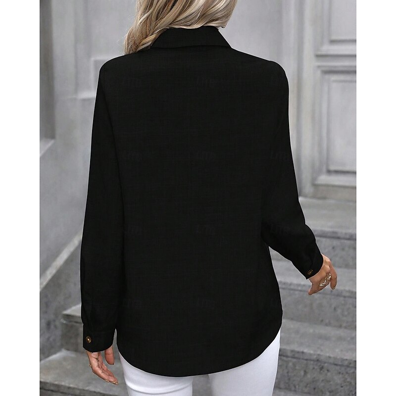 Women's Shirt Stylish Modern Long Sleeve Regular Tops Shirt Collar Work Black Light Green Pink Blue Spring Fall Winter 15
