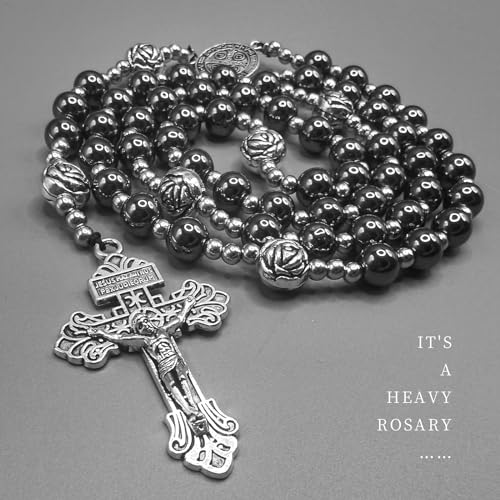 • Rosary catholic Hematite size is 8mm beads, our father beads are 10mm rose flower zinc alloy metal beads, it is make you can pray with your eyes closed and know you have reached the end of a decade and can meditate on the next holy rosary of the rosaries.