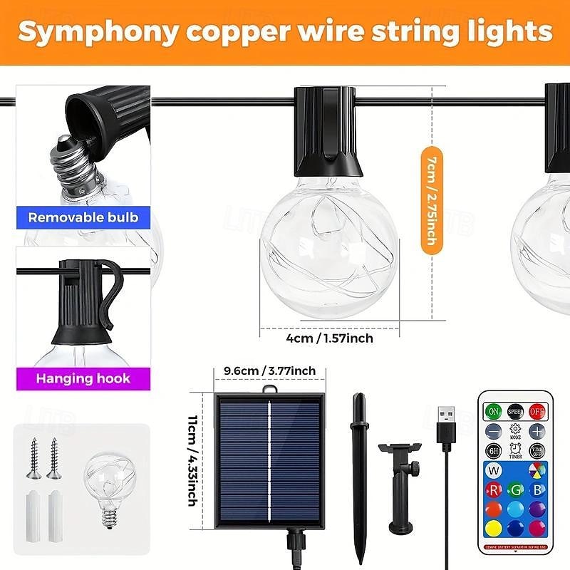 $66.99 - G40 Solar String Lights, Outdoor Waterproof Colorful String Light with Remote Control for Christmas Courtyard Garden Wedding Festival Decoration Light String 2025. Shop for cheap Solar String Lights online? Buy at lightinthebox.com on sale today!