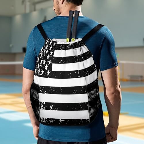 HOT ! Black American Flag Drawstring Backpack Sports Gym String Bag Sackpack Water Resistant Pockets for Women Men