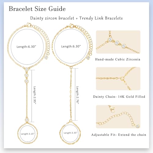 • [2 Pcs Gold Hand Chain For Women]----You will get 2 pcs trendy gold hand chain in a suit. Those Chains come in different styles, include cubic zirconia chain and shiny chain. They are suitable for all occasions and fulfill all your dressing needs.