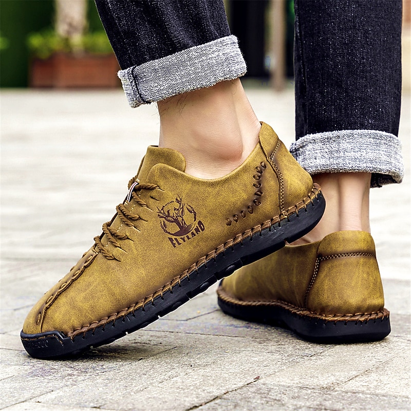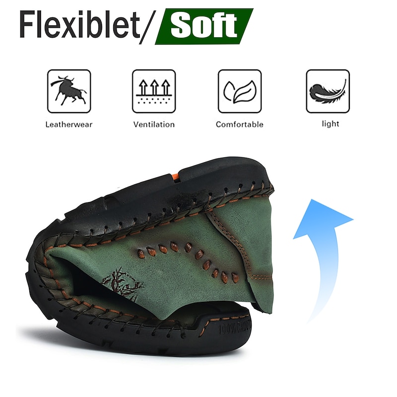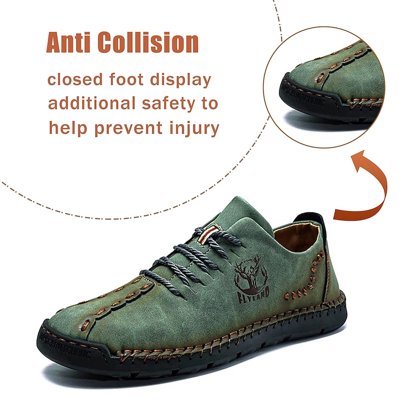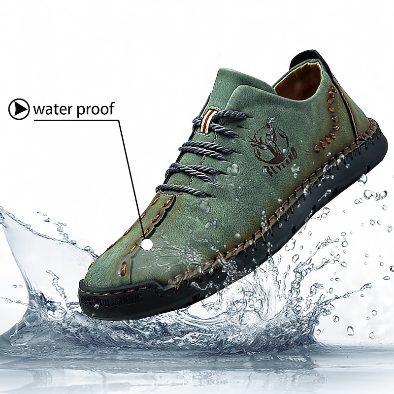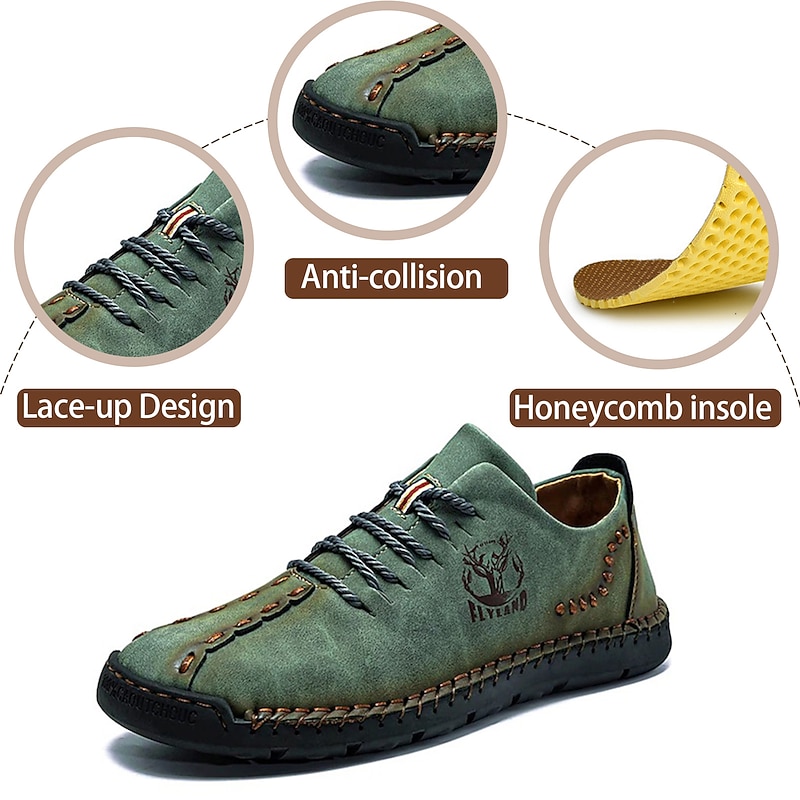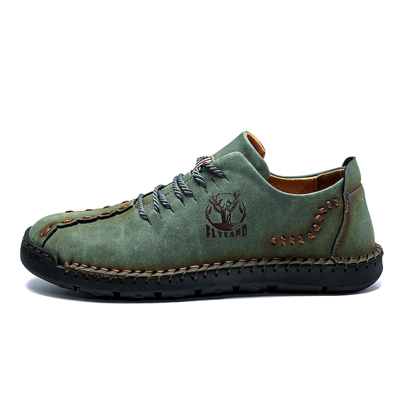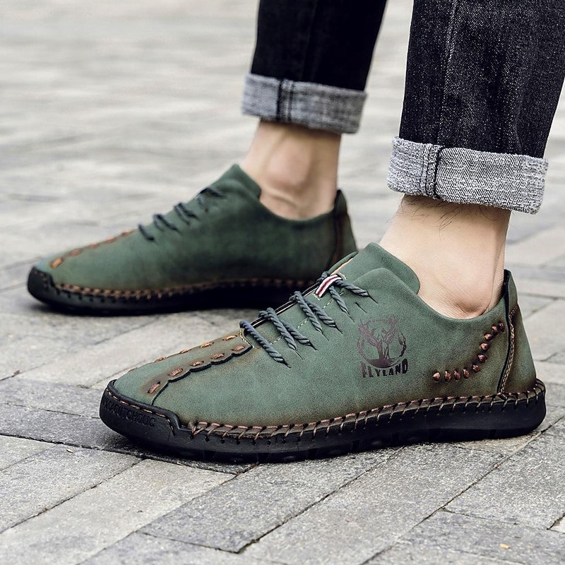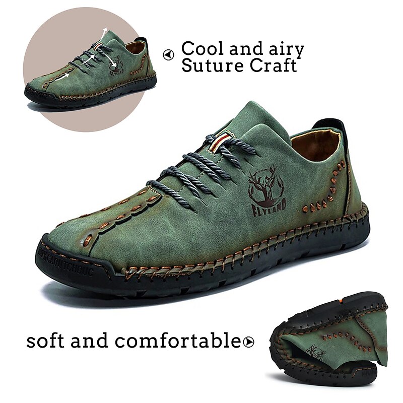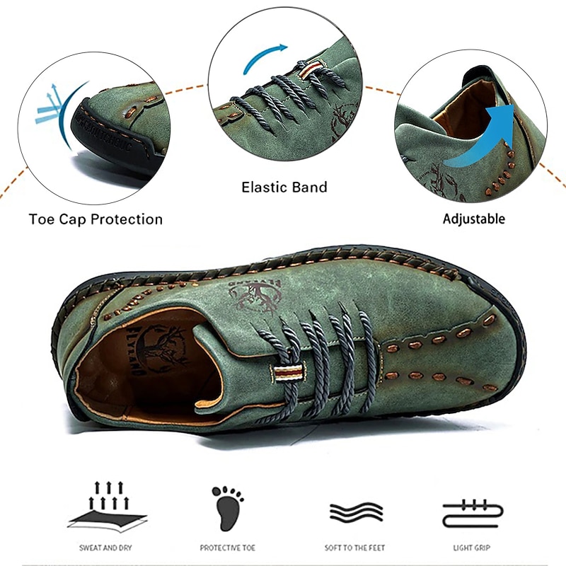 Highlights [Fabric] Expertly crafted from high-quality faux leather, these men's casual shoes feature a durable upper in a distinctive green hue, ensuring style and longevity. The material offers a blend of comfort and resilience, ideal for everyday wear. [Fit] Designed with a classic lace-up closure, these shoes promise a secure and comfortable fit, further enhanced by the soft and cushioned interior lining that supports extended wear. The rugged, textured rubber outsole ensures excellent grip and stability. [Design Highlights] Embracing a vintage style, these shoes boast handcrafted detailing and visible decorative stitching. The sophisticated design is complemented by round toes and sleek splicing, adding a touch of elegance to casual dressing. [Occasions] Perfect for daily wear and outdoor activities, these shoes are versatile enough to match various casual occasions, from leisurely walks to casual outings. Their vintage charm and practical design make them an ideal choice for spring and summer seasons. [Size Range] Available in an extensive range of sizes, from US6 to US12, accommodating a wide variety of foot sizes and ensuring a perfect fit for every individual.
