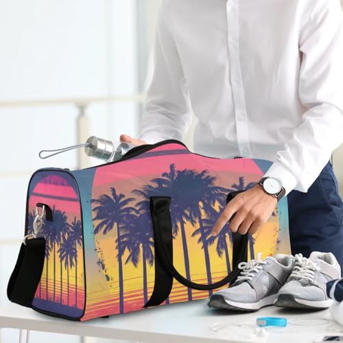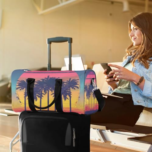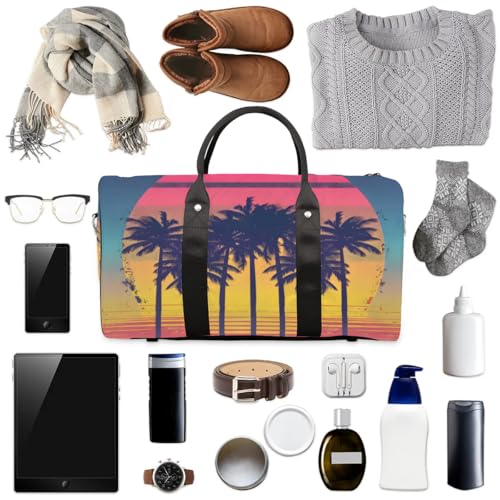 HOT ! Travel Duffel Bag, Beach Tropical Sunset Palm Trees Sports Tote Gym Bag Foldable Western Aztec Weekender Bag Carry on Luggage Handle Bag Overnight Shoulder Bag for Women Men,A-1193