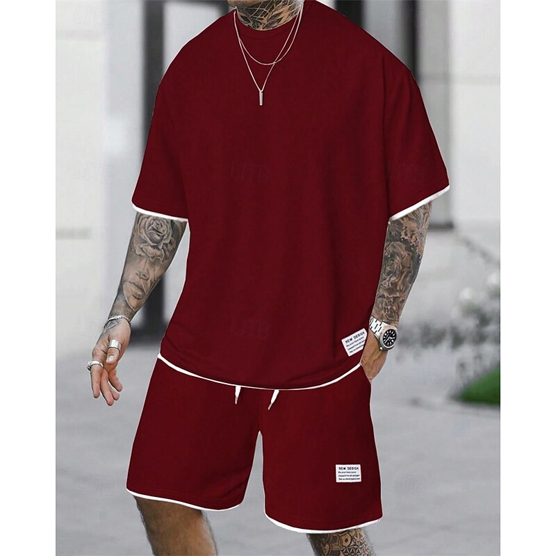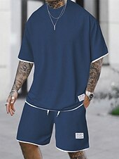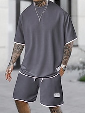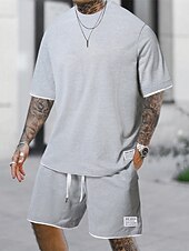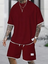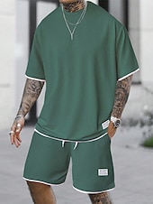 More information about Men's Workout Set Tracksuit T shirt & Shorts Set Outfit Set Crew Neck Outdoor Daily Sports Pocket Drawstring 2 Piece Plain Light Green Pink Red Polyester Activewear Classic Casual Summer