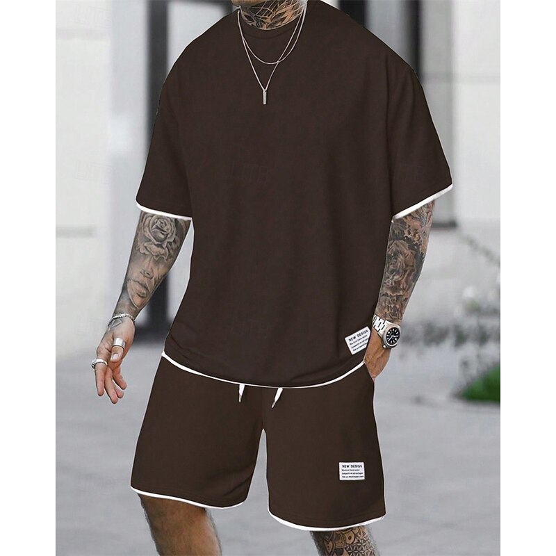 HOT ! Men's Workout Set Tracksuit T shirt & Shorts Set Outfit Set Crew Neck Outdoor Daily Sports Pocket Drawstring 2 Piece Plain Light Green Pink Red Polyester Activewear Classic Casual Summer