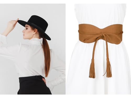 Womens Faux Suede Tassel Belt, Vintage Bow Tie Corset Cinch Obi Belts Waistband for Dress 6