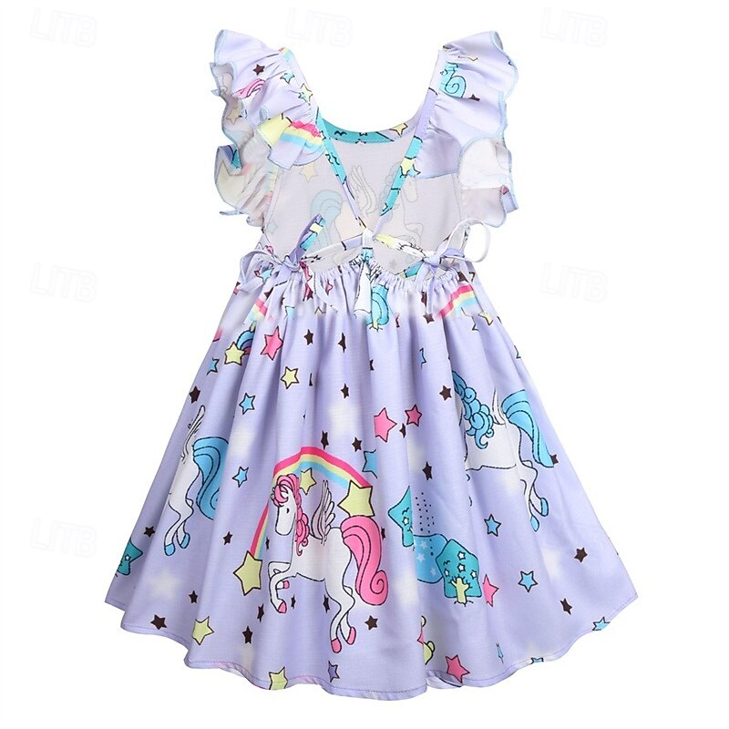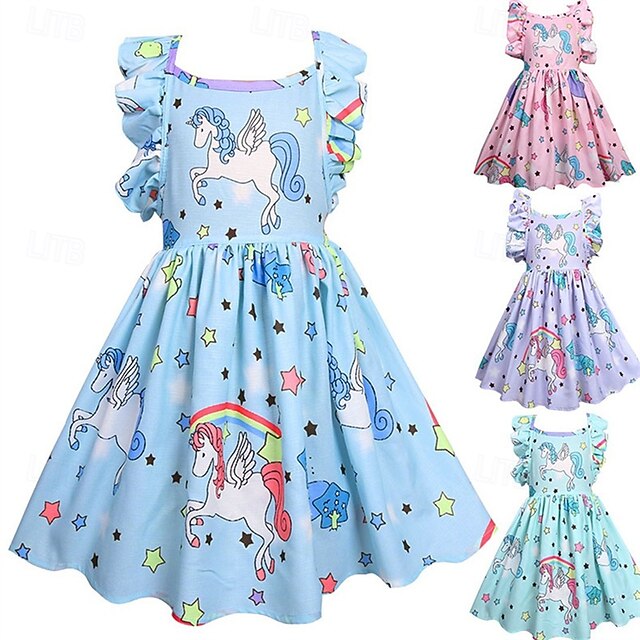 More information about Kids Girls' Dress Unicorn Sleeveless Outdoor Casual Ruffle Fashion Adorable Cotton Above Knee Casual Dress A Line Dress Summer Spring 4 years+ Light Green Pink Purple