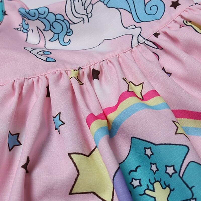 Kids Girls' Dress Unicorn Sleeveless Outdoor Casual Ruffle Fashion Adorable Cotton Above Knee Casual Dress A Line Dress Summer Spring 4 years+ Light Green Pink Purple 15