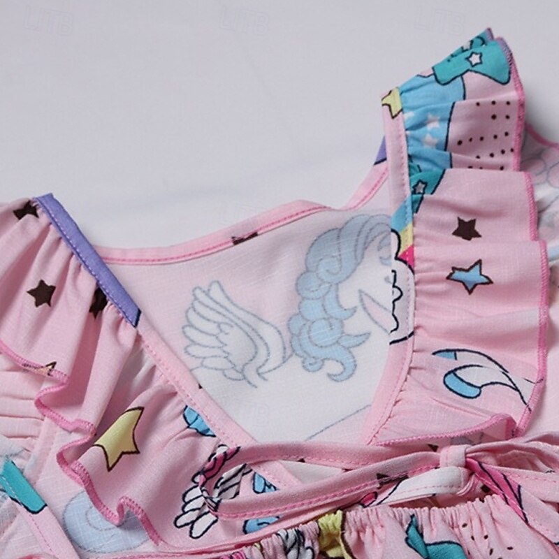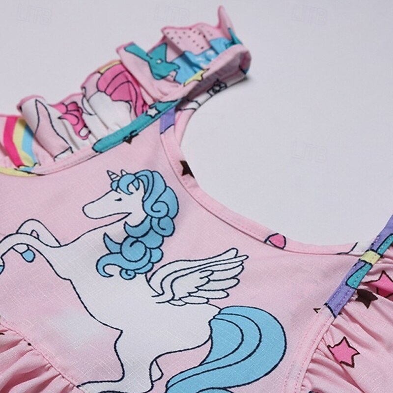 Kids Girls' Dress Unicorn Sleeveless Outdoor Casual Ruffle Fashion Adorable Cotton Above Knee Casual Dress A Line Dress Summer Spring 4 years+ Light Green Pink Purple 17