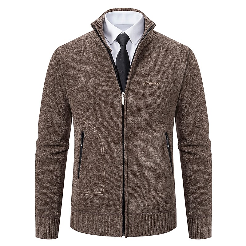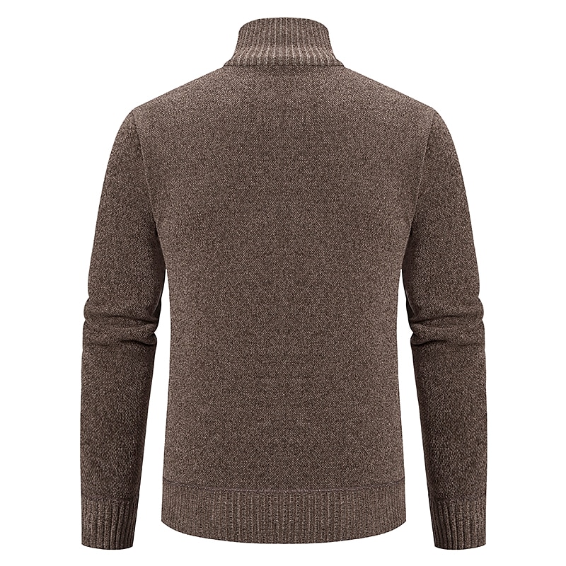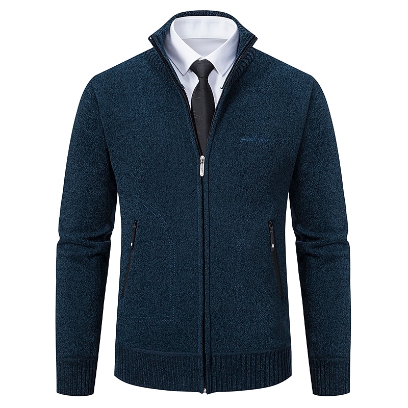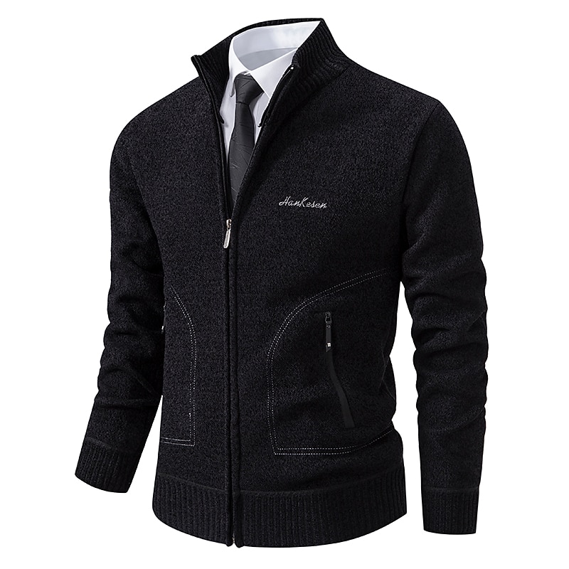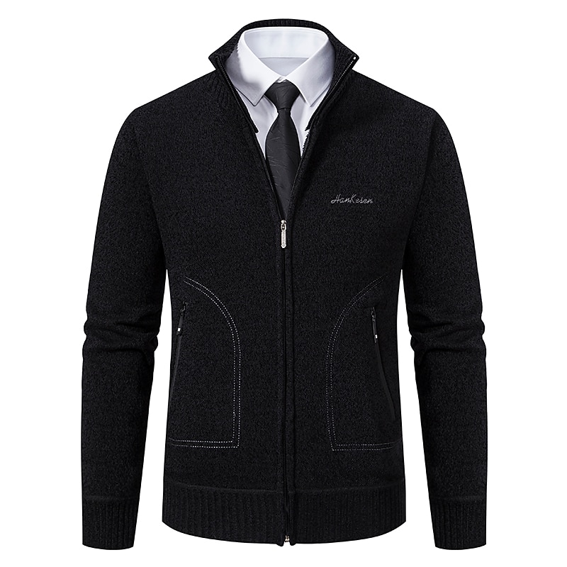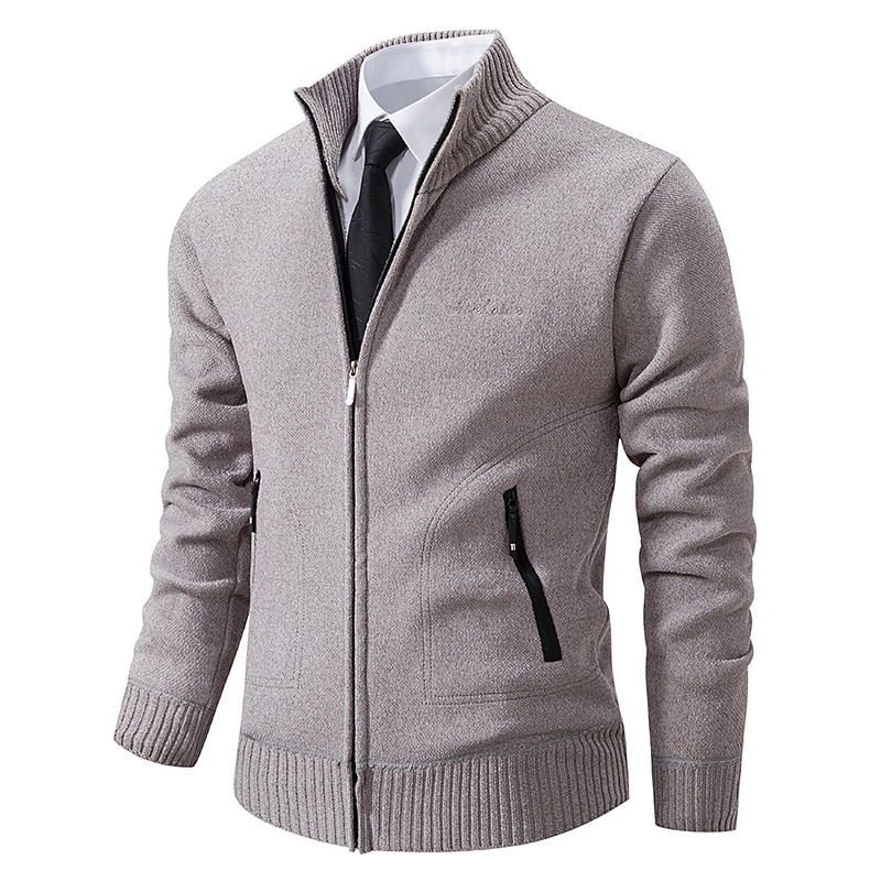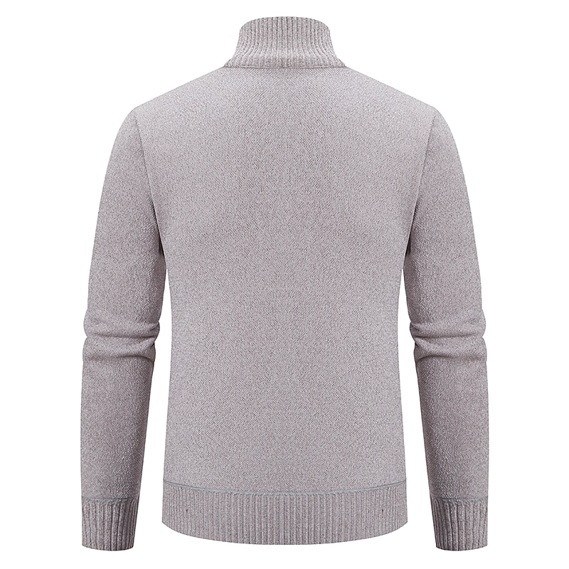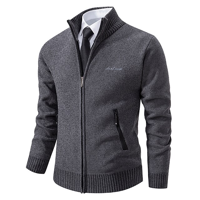 More information about Men's Sweater Cardigan Sweater Ribbed Knit Regular Knitted Stand Collar Warm Ups Modern Contemporary Daily Wear Going out Clothing Apparel Fall & Winter Black Light Grey S M L