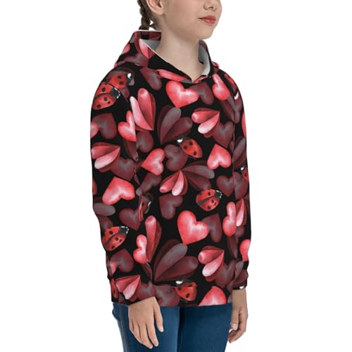 Ladybugs and Red Hearts Kid Hoodies Boys Sweatshirts Girls Pullover with Pocket 7