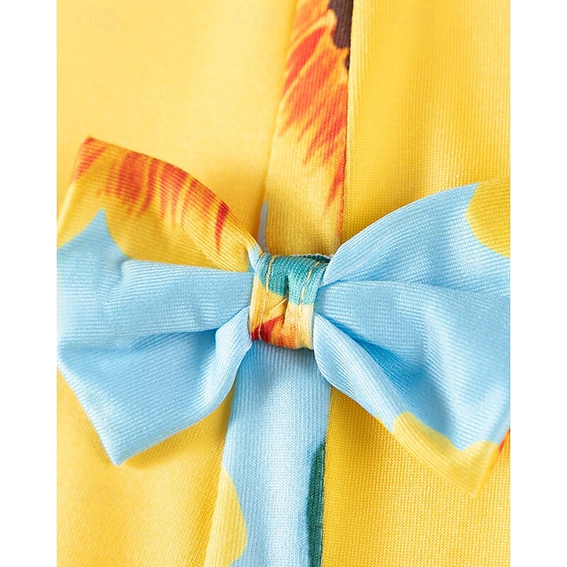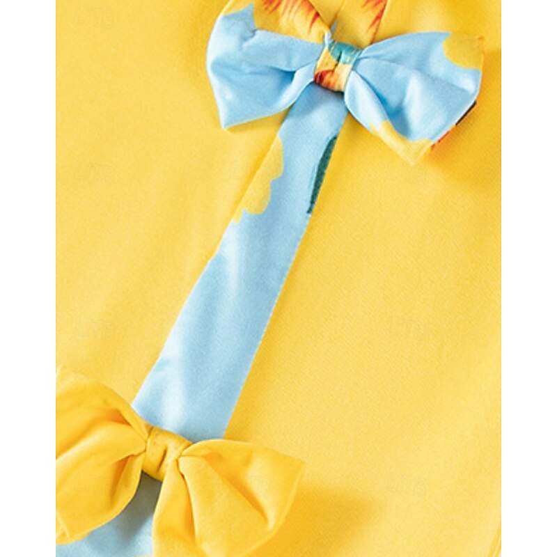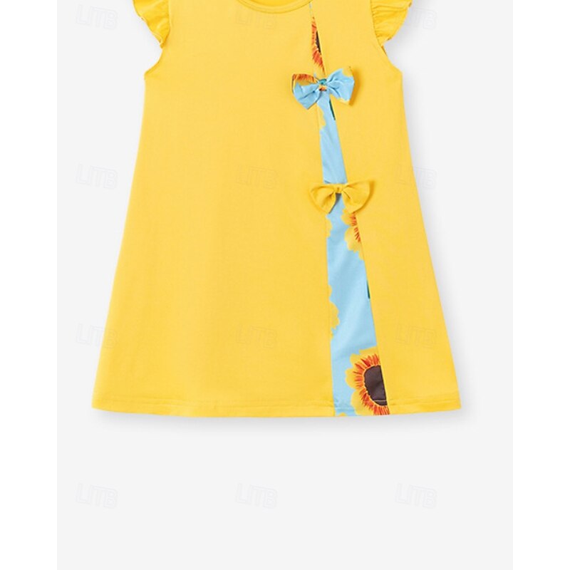 More information about Kids Girls' Dress Color Block Sleeveless Outdoor Patchwork Adorable Basic Cotton Knee-length Casual Dress Summer 4 years+ Yellow