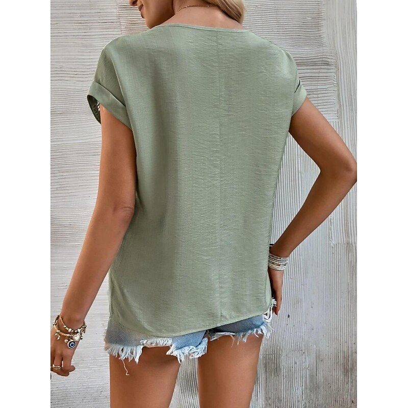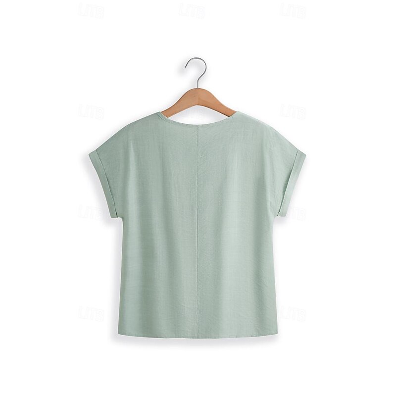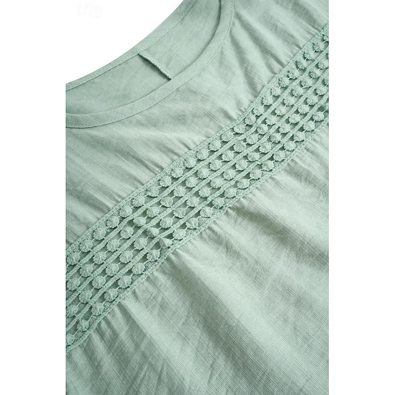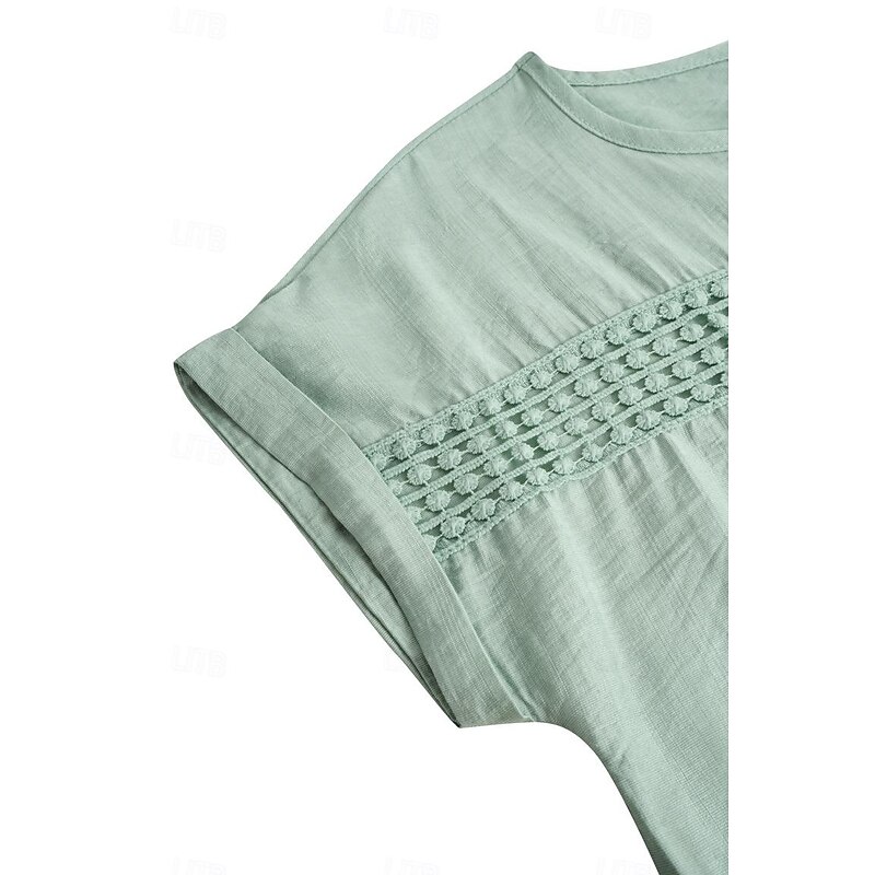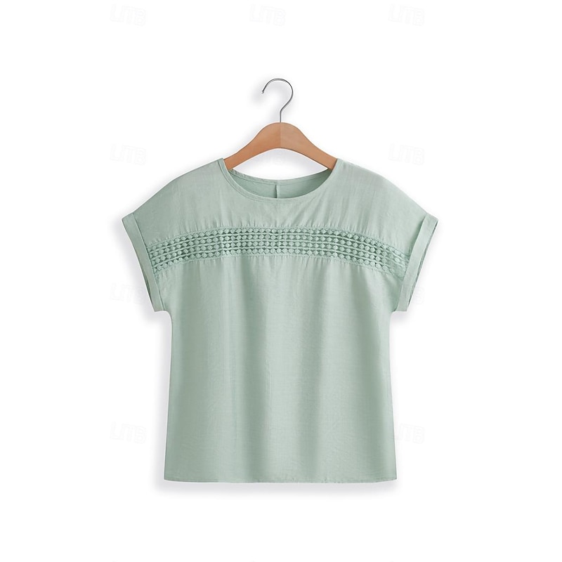 More information about Women's Linen-Inspired Shirts Lace T-shirt Plain Fashion Short Sleeve Crew Neck Regular Tops Vacation Daily Lace Black Blue Brown Green Khaki Summer