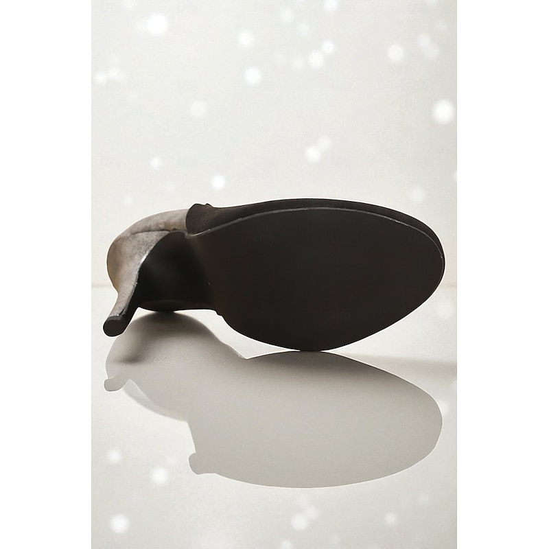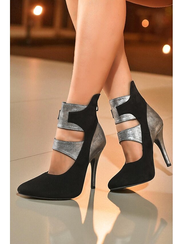 More information about Women's Black and Silver High Heel Ankle Strap Dance Shoes - Suede and Metallic Stiletto Pumps for Professional Ballroom & Party Performances