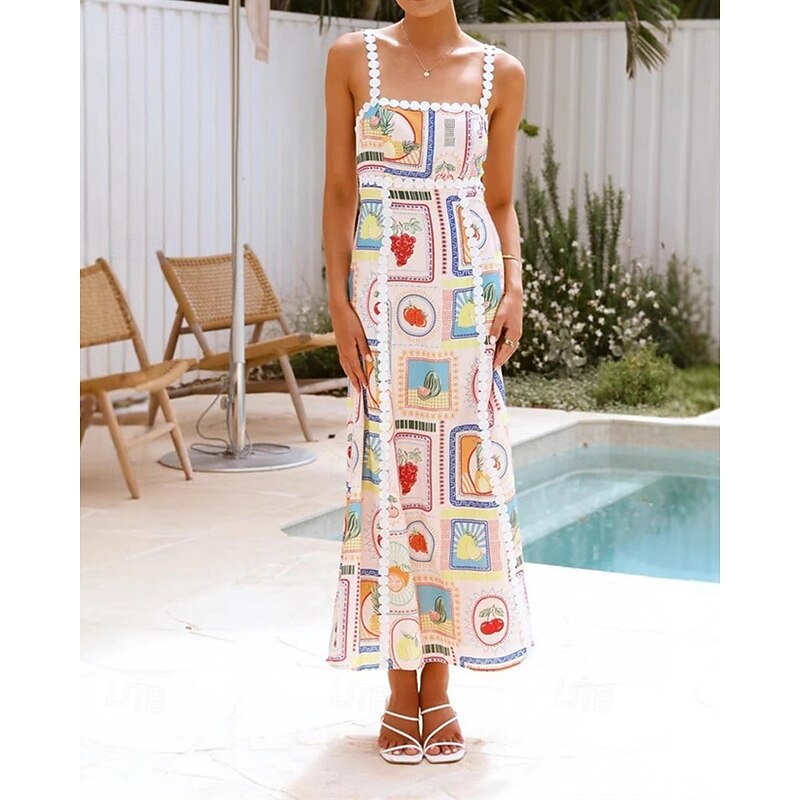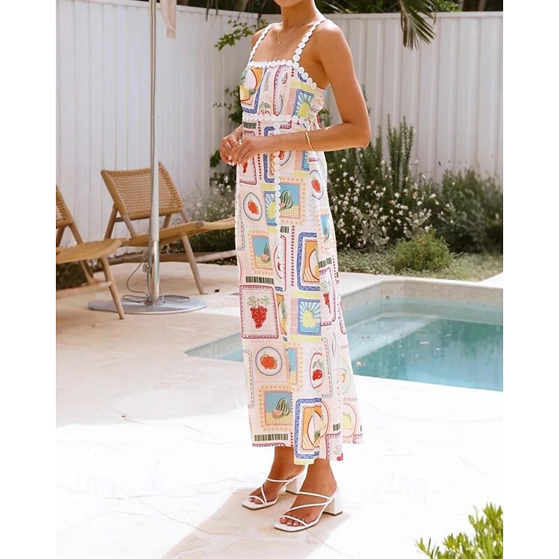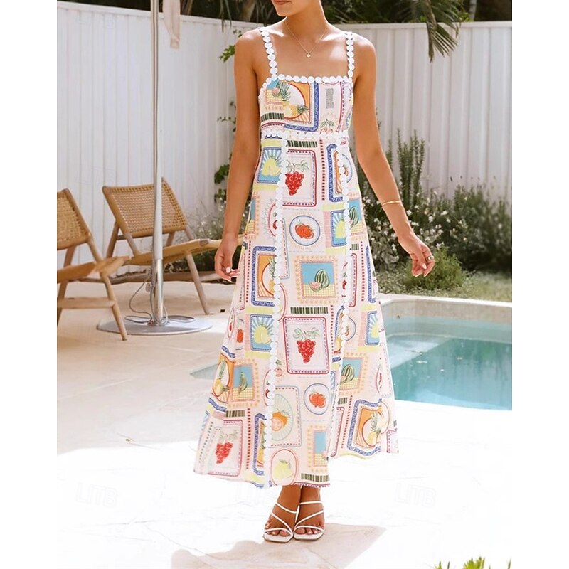 More information about Women's Long Dress Maxi Dress Cotton Linen Dresses Casual Dress Fashion Outdoor Party Holiday Regular Fit Fruit Sleeveless Spaghetti Strap Beige Summer