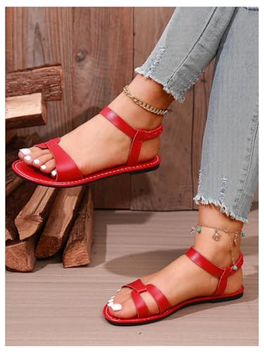 GORGLITTER Women's Red Strappy Ankle Strap Sandals Fisherman Cut Out Dressy Open Toe Flat Sandals 2025 2