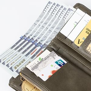 • Large Capacity Wallet:Designed with 12 card slots (including 1 ID window), 1 full-length bill pocket, 1 large zipper compartment, and 1 coin pocket, this women’s wallet keeps your essentials neatly organized and easy to access.