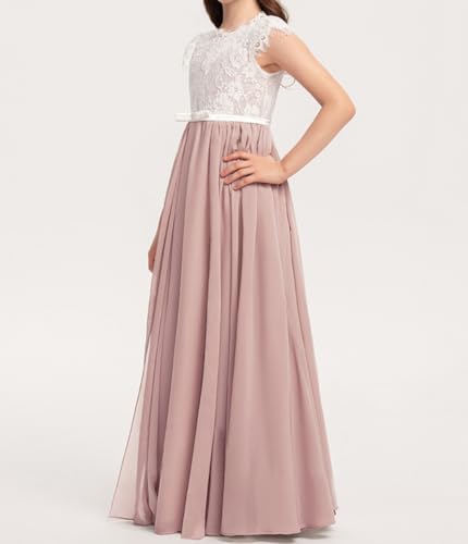 • Features: Floor-Length Satin Lace Chiffon Bridesmaid Dress with Bow Flower Girls Wedding Party Dresses