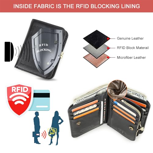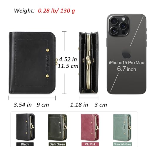 • PREMIUM LEATHER: Crafted from Full Grain Cowhide Leather, women's small bifold black wallets with kiss lock is durability and luxurious