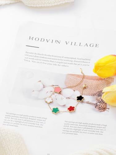More information about 14K Gold Plated Dainty Colorful Five Leaf Clover Dot Bracelets for Women Lucky Flower Jewelry