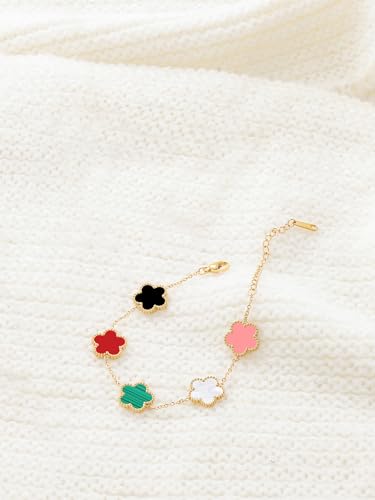 14K Gold Plated Dainty Colorful Five Leaf Clover Dot Bracelets for Women Lucky Flower Jewelry 5