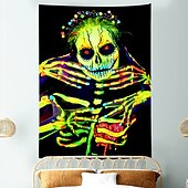 HOT ! Halloween Decorations Blacklight UV Reactive Wall Tapestry Skeleton Art Decor Blanket Curtain Hanging Home Bedroom Decoration Polyester Skull
