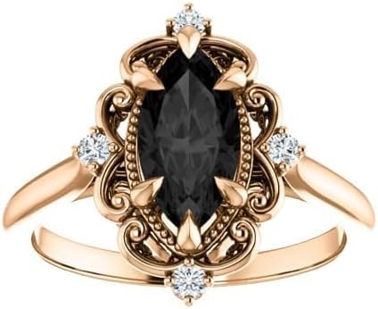 HOT ! 1CT-6CT Vintage Black Marquise Engagement Ring 10K Yellow Gold, Victorian Marquise Black Diamond Ring, Filigree Onyx, Bridal Ring, Wedding Ring