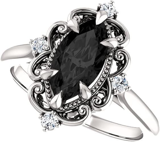 • Stone: Genuine Black Onyx | Stone Quality: AAAAA-Excellent Quality | Stone Shape: Marquise Brilliant Shape | Stone Weight Approx: 1/1.5/2/2.5/3/3.5/4/4.5/5 Carats |Side Stone Shape: Round Brilliant Cut | Stone Color/Clarity: White/VVS1 | Stone Weight: 0.30 TCW | Luster: Excellent | Stone Color/Clarity: White/VVS1 | Stone Cut : Handmade Manual Cut | Type: Handmade Ring | Setting Type: Prong Setting