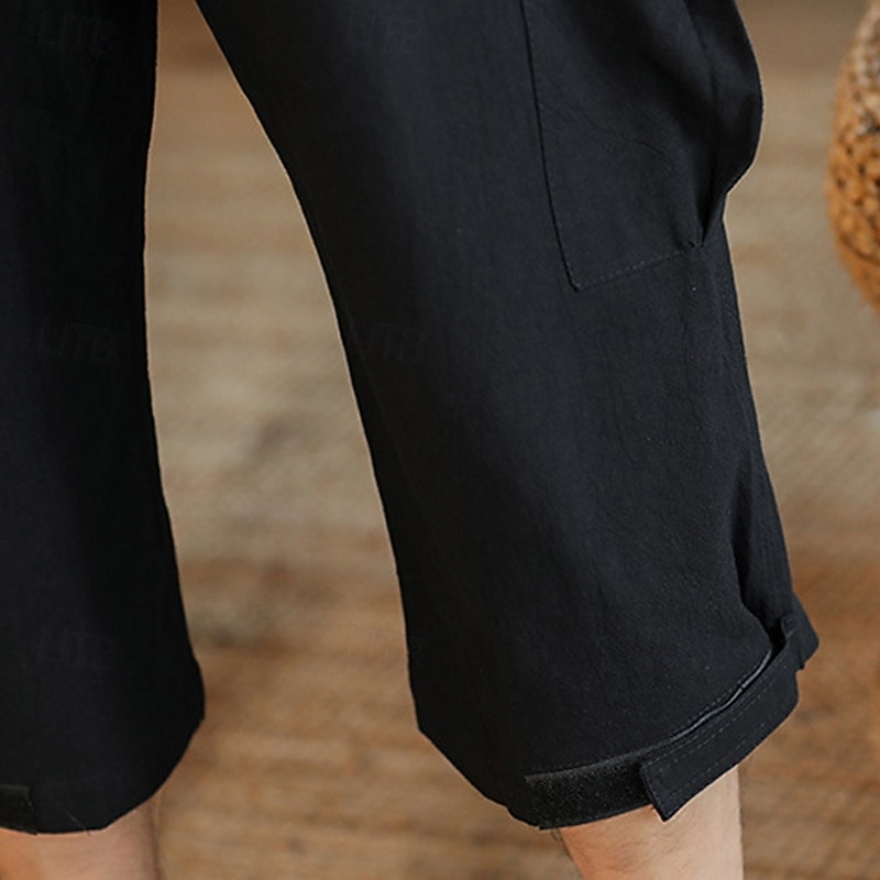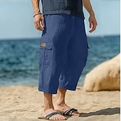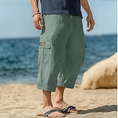 More information about Men's Capri Cargo Shorts Linen Shorts Summer Shorts Beach Shorts Drawstring Elastic Waist Multi Pocket Plain Comfort Breathable Knee Length Yoga Holiday Beach Vacation Fashion Black Navy Blue