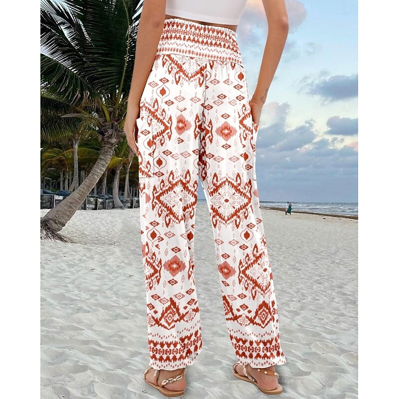 Women's Slacks Baggy Pants Casual Daily Chino Full Length High Waist Multi Color Geometry Pocket Printing High Cut Comfortable Inelastic Casual Daily Orange red Black White Blue Summer Spring Regular 5