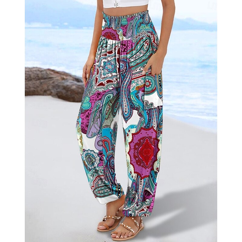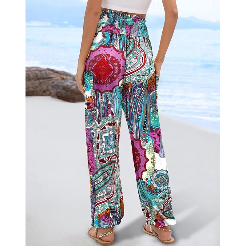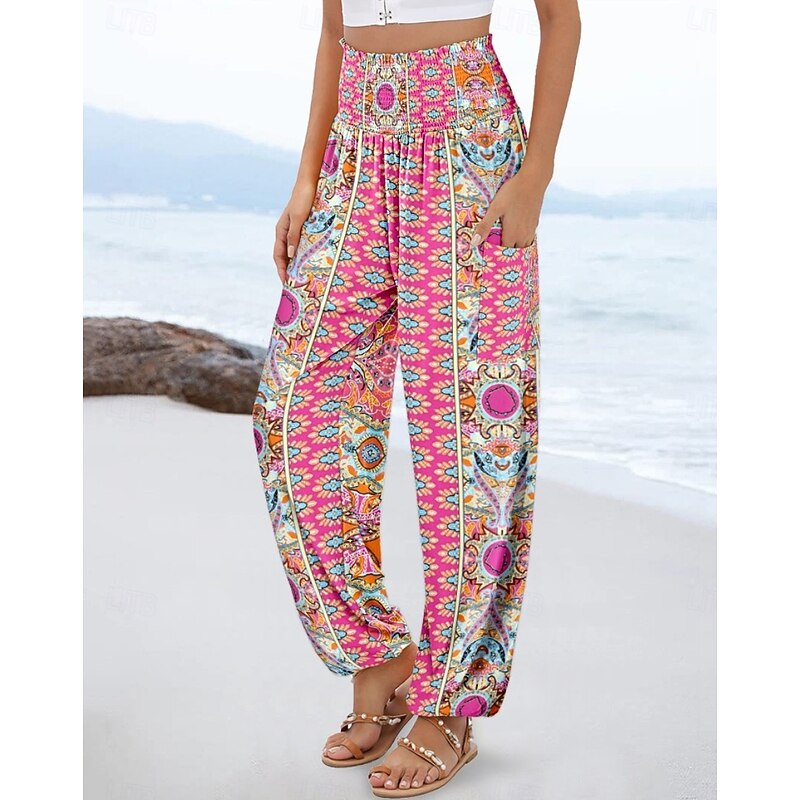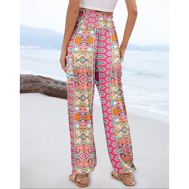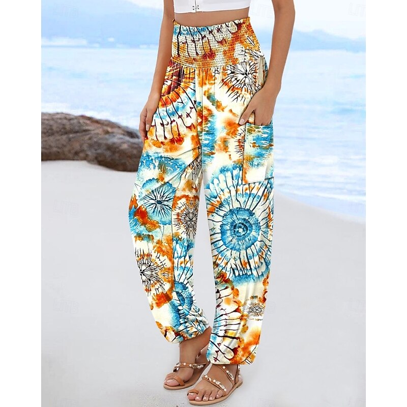 More information about Women's Slacks Baggy Pants Casual Daily Chino Full Length High Waist Multi Color Geometry Pocket Printing High Cut Comfortable Inelastic Casual Daily Orange red Black White Blue Summer Spring Regular
