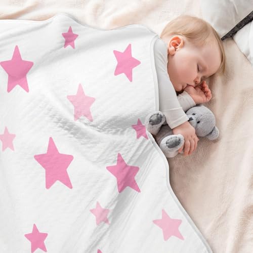 More information about Custom Pink Star Baby Swaddle Blanket Breathable Personalized Logo Monogrammed Blankets for Nursery Stroller Crib 30x40in mantitas para Bebes recien nacidos