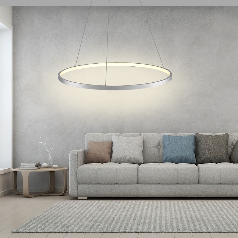 1-Light 60cm 24“ LED Pendant Light Metal Acrylic Circle Design Chrome Modern Contemporary 110-120V 220-240V 9
