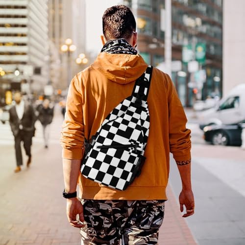 HOT ! Men's Packable Sling Bag Backpack, Lightweight Chest Shoulder Backpack for Fitness Gym, Black And White Race Checkered Daypack Bags