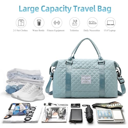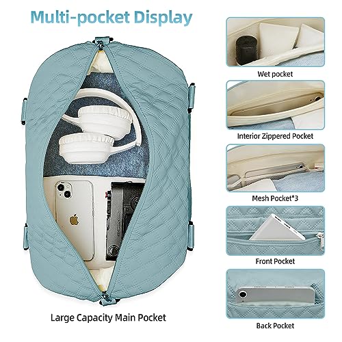 Large Travel Duffel Bag, Sports Tote Gym Bag, Shoulder Weekender Overnight Bag for Women with Wet Pocke(Blue) 7