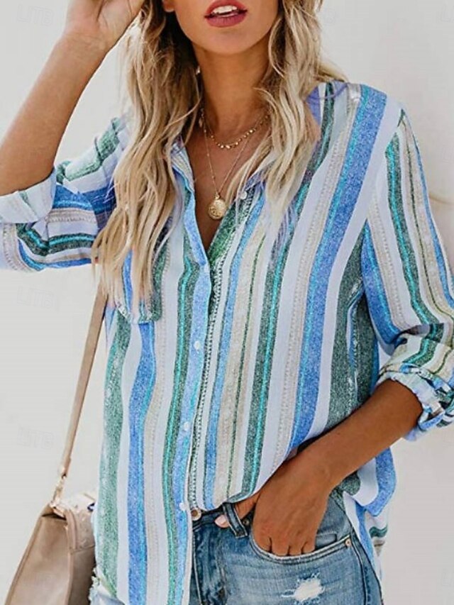 More information about Women's Shirt Button Down Blouse Striped Stylish Casual Long Sleeve Shirt Button Down Blouse Collar Regular Tops Daily Buttons Print Pink Blue Orange Green Rose Pink Summer Spring