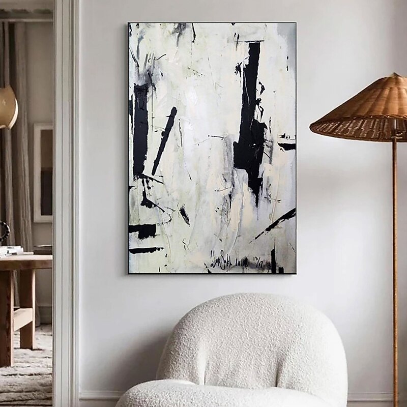 Oil Painting Handmade Big Size Painting Hand Painted Wall Art Black-White Abstract Canvas Painting Home Decoration Decor No Frame Painting Only 1