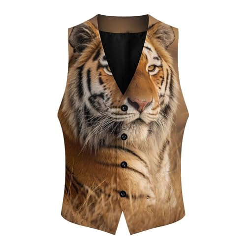 Tiger Men's Suit Vest Slim Fit Business Dress Party Pattern Waistcoat Vest Top 1