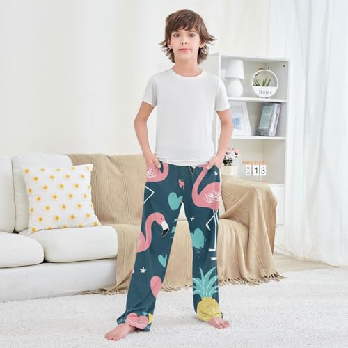 Flamingo Sweet Love Boys Long Pants Soft Trousers Elastic Waist Kids Lounge Bottoms with Pockets S-XL 4