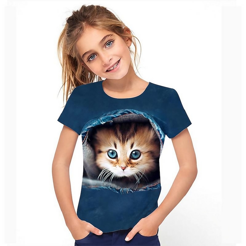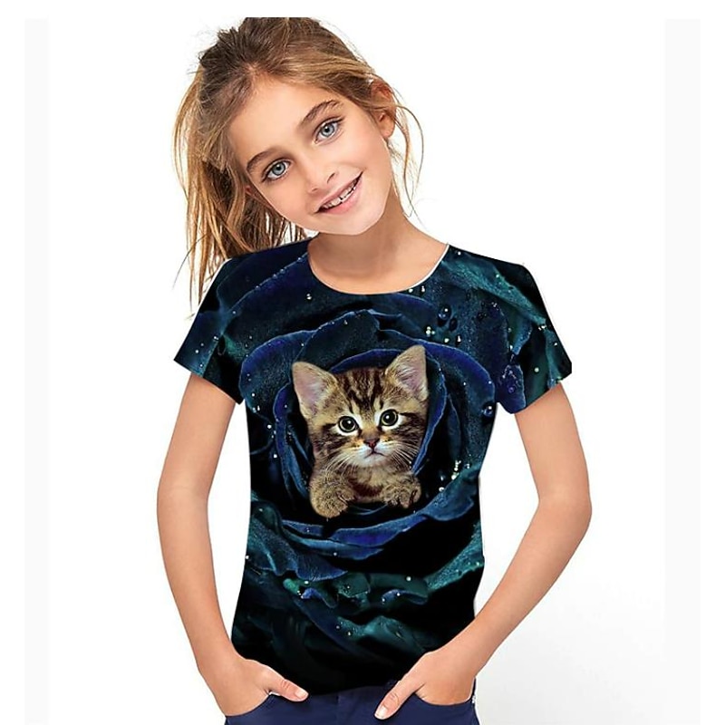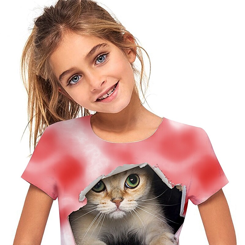 More information about Girls' 3D Cat T shirt Short Sleeve 3D Print Summer Active Cute Polyester Kids 3-12 Years Outdoor Daily Regular Fit