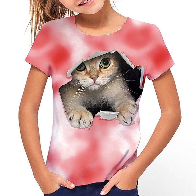 HOT ! Girls' 3D Cat T shirt Short Sleeve 3D Print Summer Active Cute Polyester Kids 3-12 Years Outdoor Daily Regular Fit