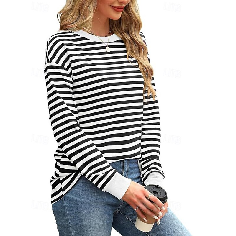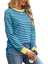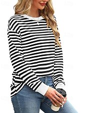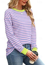 More information about Women's Blouse Striped Modern Casual Long Sleeve Crew Neck Regular Tops Daily Going out Patchwork Blush Pink Black White Light Green Pink Summer