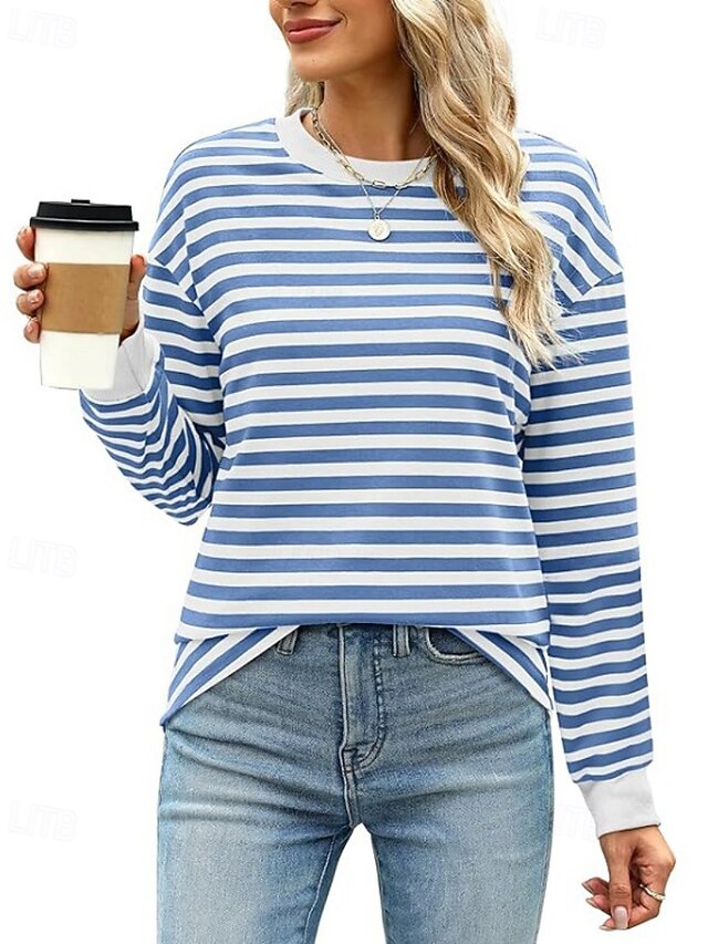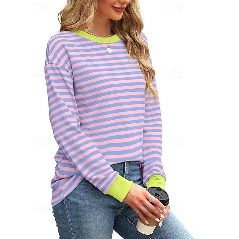 HOT ! Women's Blouse Striped Modern Casual Long Sleeve Crew Neck Regular Tops Daily Going out Patchwork Blush Pink Black White Light Green Pink Summer