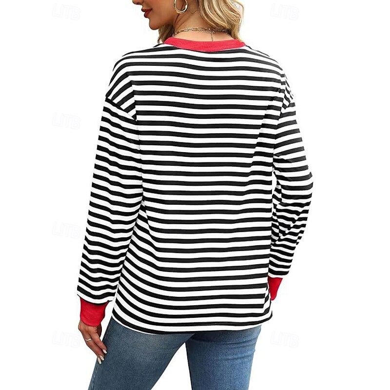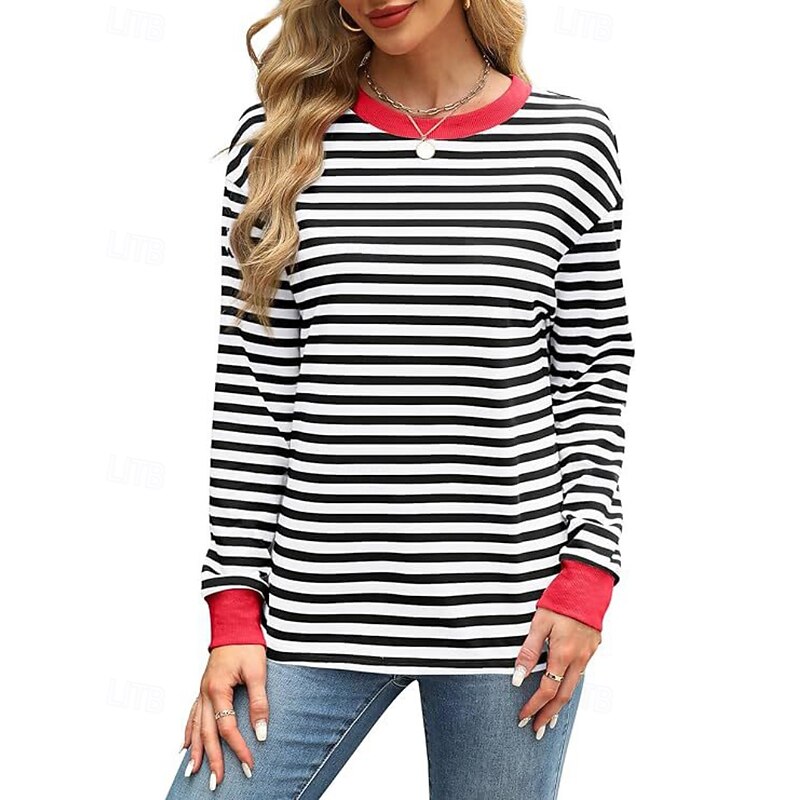 Women's Blouse Striped Modern Casual Long Sleeve Crew Neck Regular Tops Daily Going out Patchwork Blush Pink Black White Light Green Pink Summer 26