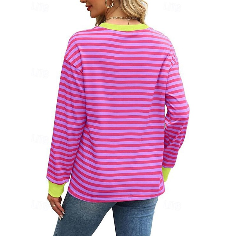 Women's Blouse Striped Modern Casual Long Sleeve Crew Neck Regular Tops Daily Going out Patchwork Blush Pink Black White Light Green Pink Summer 12