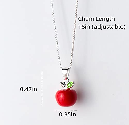 Cute Red Apple Pendant Necklace for Women Girls 925 Sterling Silver Charms Snow White Inspired 3D Candy Fruit Leaf Link Chain Adjustable Nickel Free Lovely Christmas Eve Teacher Graduation Jewelry Gift 18 inch 3