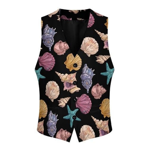 Shells Conchs And Starfish Men's Suit Vest Slim Fit Business Dress Party Pattern Waistcoat Vest Top 5