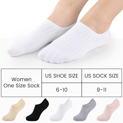 • PREMIUM MATERIAL - Natural combed cottons are grown using methods and materials that have a low impact on the environment,is simply better for your health. Fibre with strong elasticity, breathable and comfortable, these women no show socks are ideal for indoor and outdoor activity.These invisible socks for women fit US women's shoe size 6-10, US womens no show socks size 9-11.